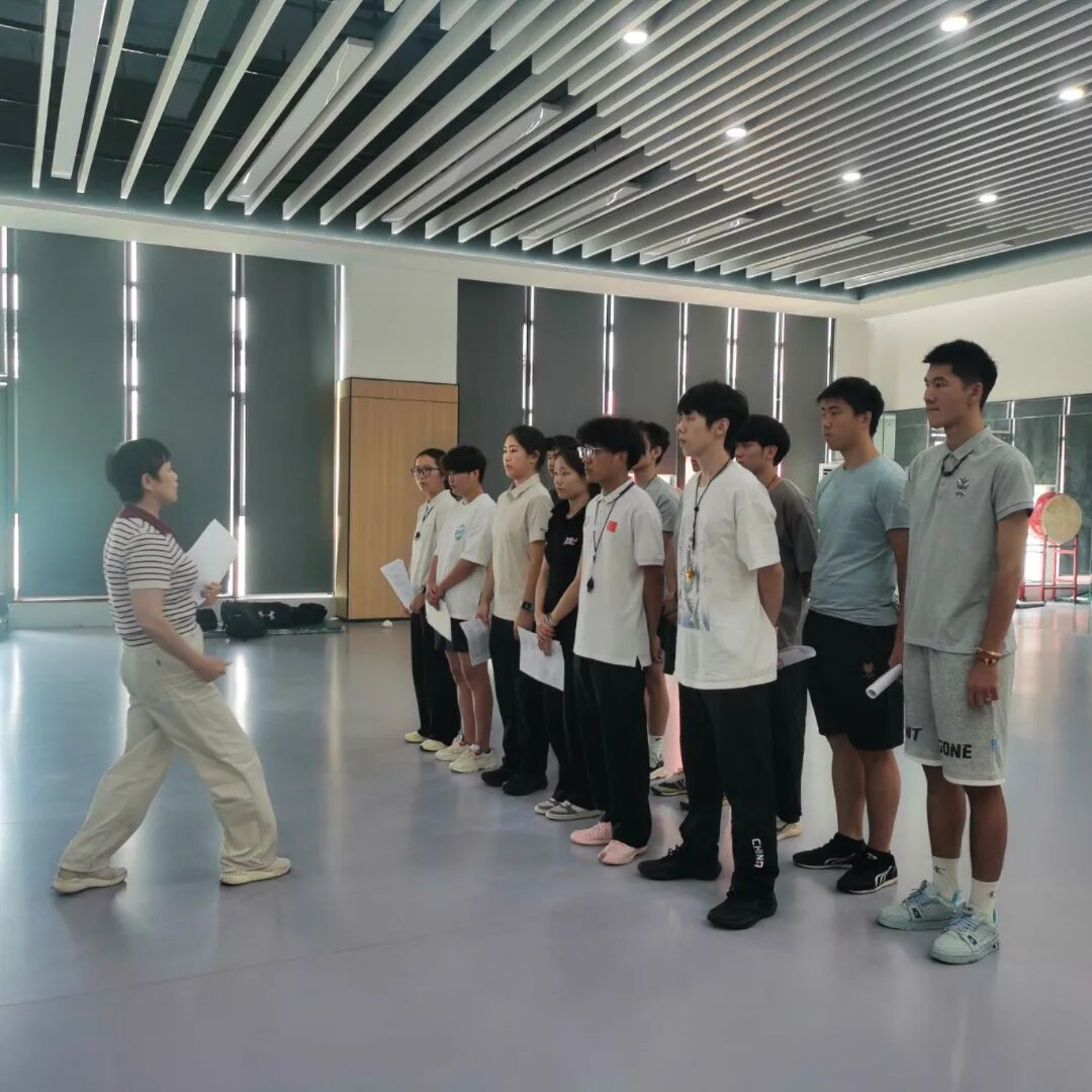 为进一步提升学生教学技能与综合素养,确保教育实习工作顺利开展,9月13日上午,体育学院2026届体育教育专业教学技能综合训练汇报考核在新体育馆举行。体育学院周平教授等12位教师担任评委。