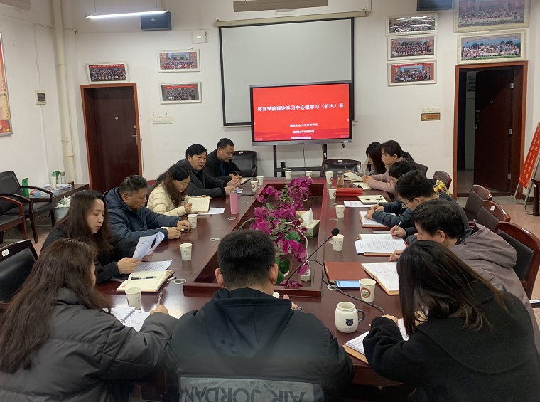 (体育学院 陈永红)1月18日,体育学院党委在十教南104会议室召开理论学习中心组学习(扩大)会议,会议由学院党委书记张素芬主持,党委委员、支部书记及科级干部参加。