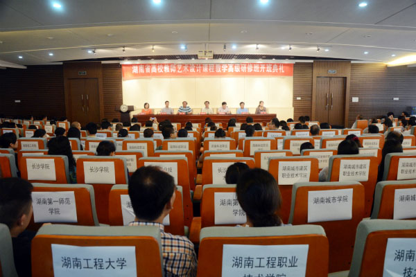 7月16日上午,由湖南省教育厅组织举办,湖南师范大学承办的湖南省高校艺术设计课程教学高级研修班开班典礼在湖南师范大学美术学院如期举行。湖南师范大学常务副校长卢岳华,省高等教育师资培训中心常务副主任方卯发等出席仪式。来自全省35所高校的设计学类青年骨干教师100多人参加了本期培训。我院熊瑛、王佩之、朱宁、姚磊、谢青伶、刘蕾、蔺薛菲7位教师参加了本次研修班的学习与交流,本次研修学习时间为5天,经过5天的学习和考核7位老师获得了由教育厅颁发的研修证书,同时在研修培训中代表湖南高校教师与讲者进行多方面的学术交流。