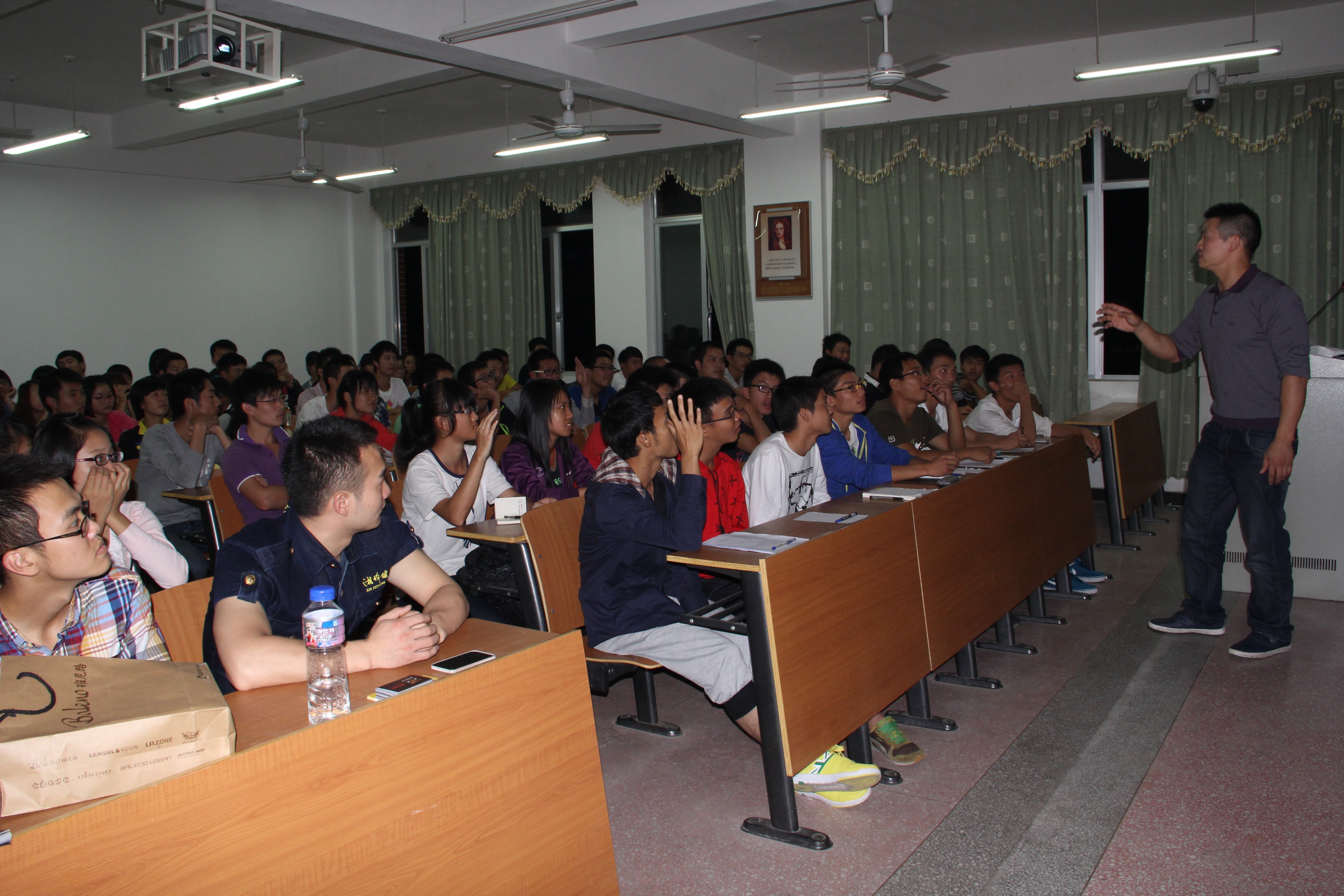 曹李华先生从事健身行业17年,对健身赛事的组织、策划,行业规范、经营与管理等方面有独到的见解,他用自己多个成功的案例和全新的理念给同学们带来了极大的思想享受和思维冲击。讲座主要从以下四个方面进行了阐述:空杯的心态面对现实社会的挑战;我省目前健身俱乐部的现状与发展;健身俱乐部的管理、销售及岗位职能;专业理论学习与工作实践相结合。