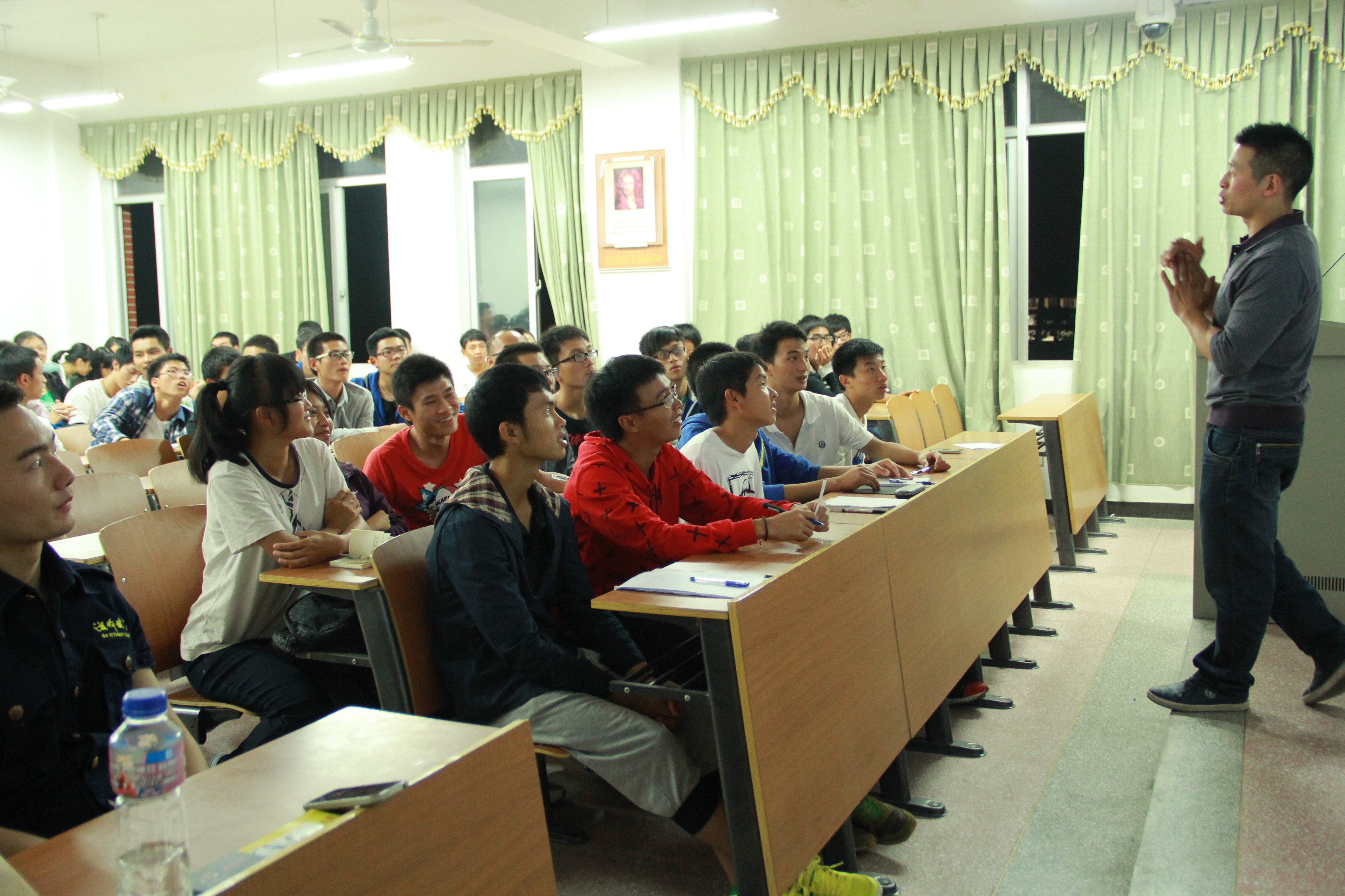 曹李华先生从事健身行业17年,对健身赛事的组织、策划,行业规范、经营与管理等方面有独到的见解,他用自己多个成功的案例和全新的理念给同学们带来了极大的思想享受和思维冲击。讲座主要从以下四个方面进行了阐述:空杯的心态面对现实社会的挑战;我省目前健身俱乐部的现状与发展;健身俱乐部的管理、销售及岗位职能;专业理论学习与工作实践相结合。