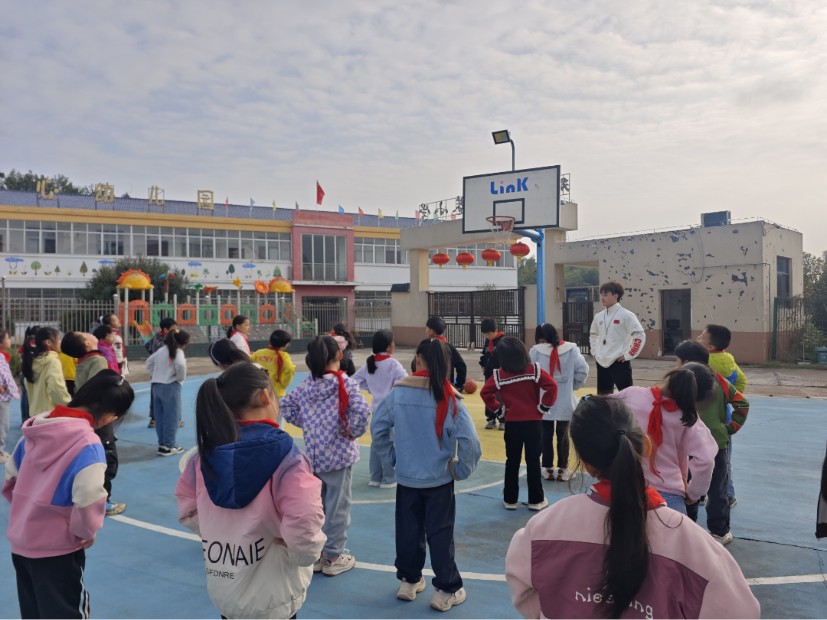 篮球教学区同样热闹非凡。22级社体一班潘绍杨和社体三班胡志宇同学聚焦传球和运球两大核心基础,设计了"运球绕身"、"传球接力"等趣味练习。孩子们在轻松愉快的氛围中掌握了基本动作要领,并在分组比赛中培养了团队协作意识。