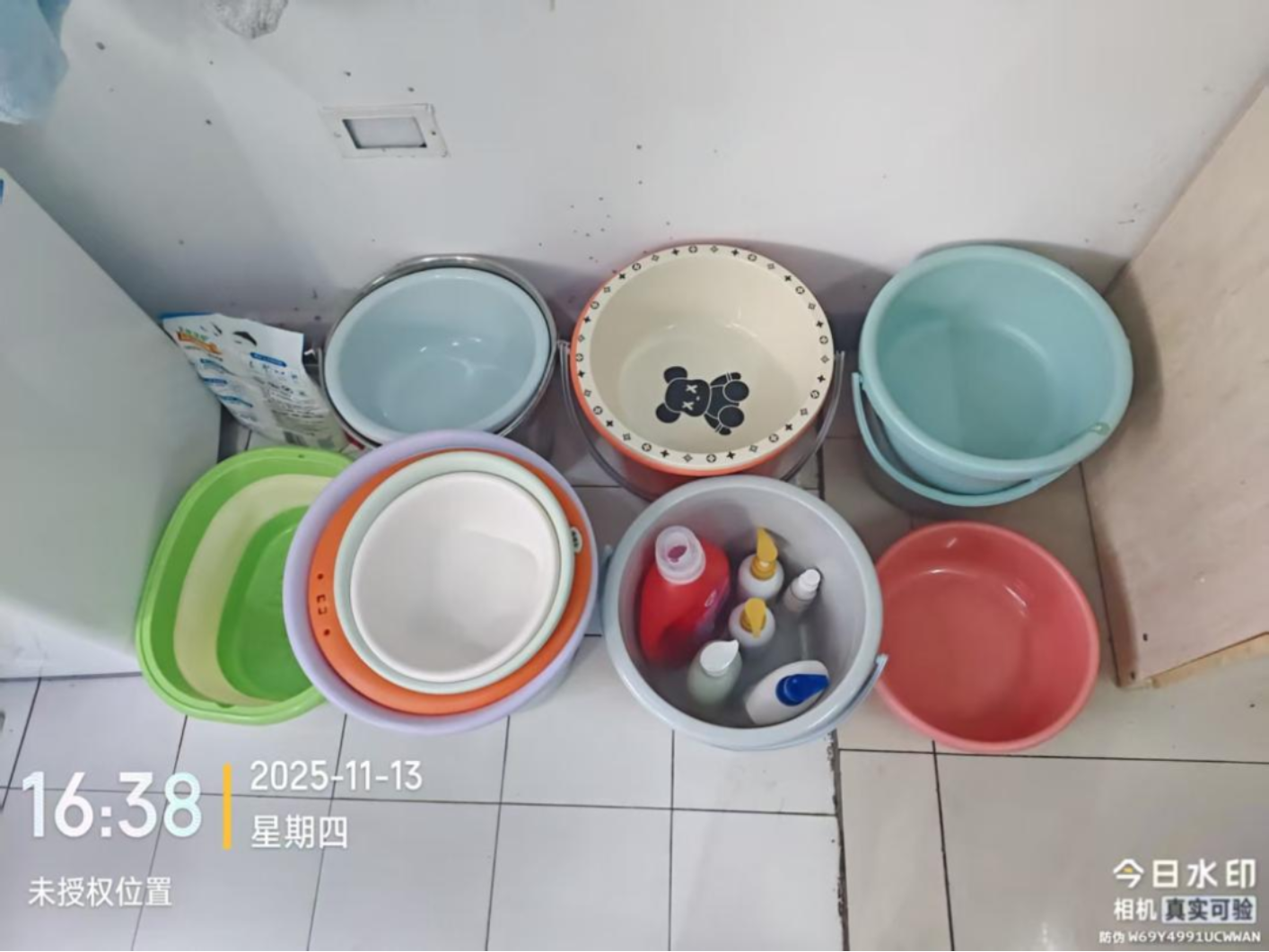 桶和盆的摆放没有限制活动区域