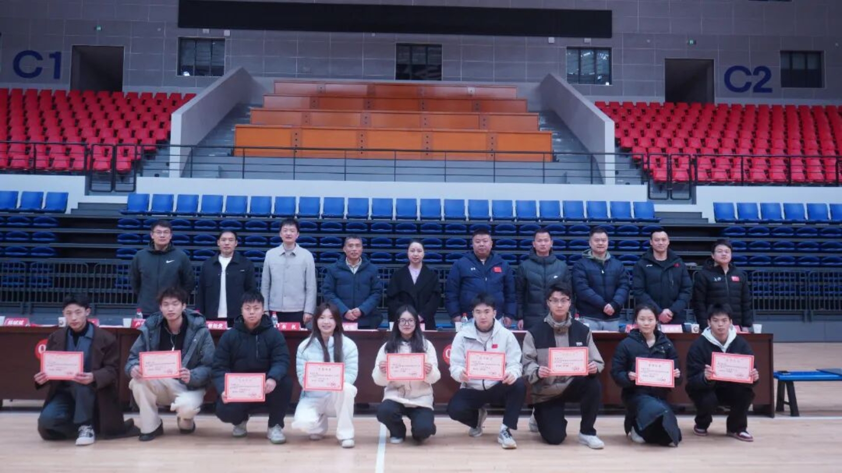 与会领导与嘉宾为课堂展示获奖学生及优秀实习生颁发荣誉证书,勉励他们珍惜荣誉、再接再厉,始终坚守教育初心,在未来的学习和工作中持续提升运动技能、创新教学方法,积极投身基础教育事业,实现“育人”与“育己”的统一。