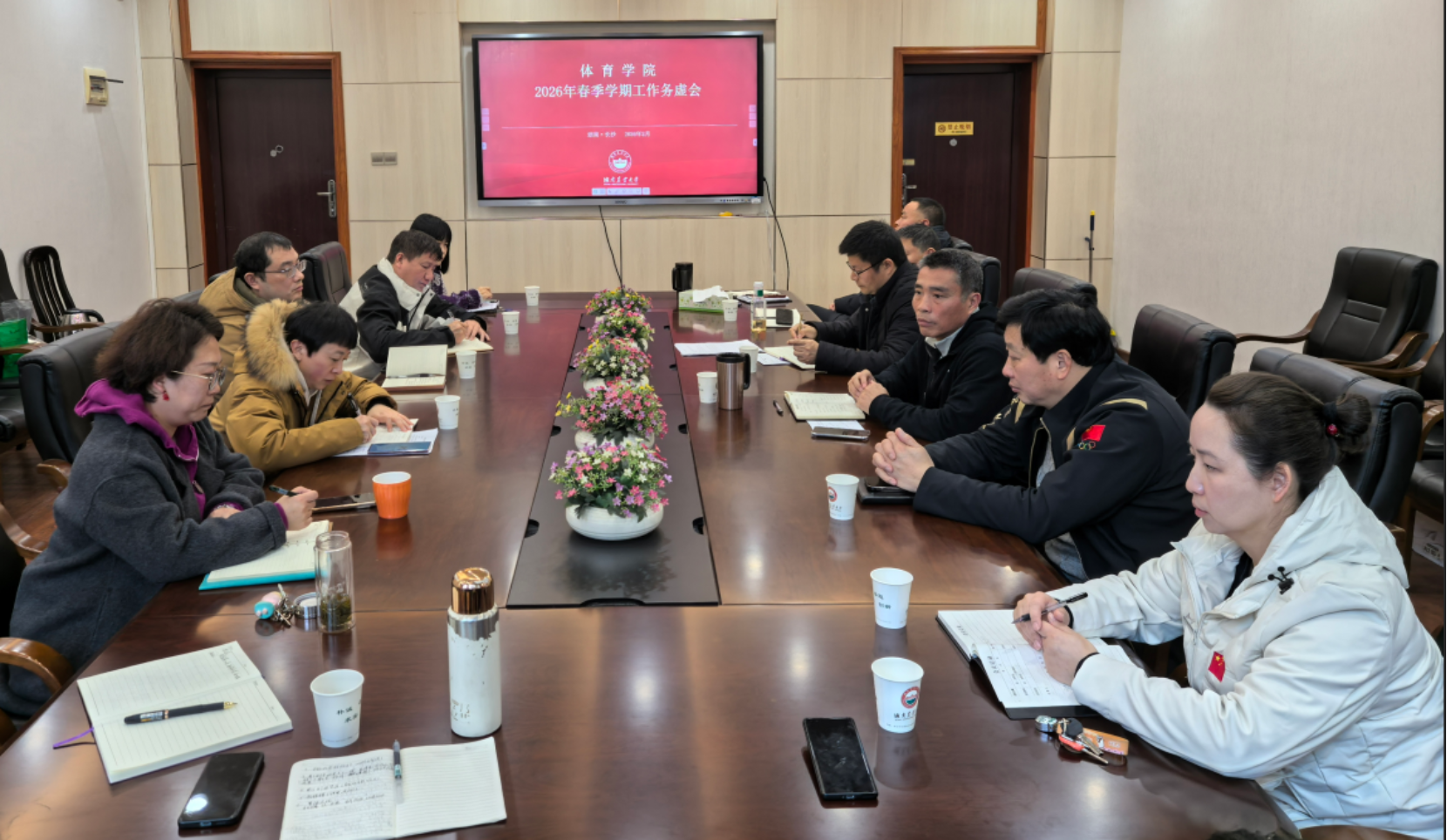 (供稿:廖胜文)2月25日上午,在10教南101会议室,体育学院召开了2026年春季学期务虚工作会议,学院全体领导班子、科级干部及基层教学组织负责人参加了会议,会议由曹庆荣院长主持。
