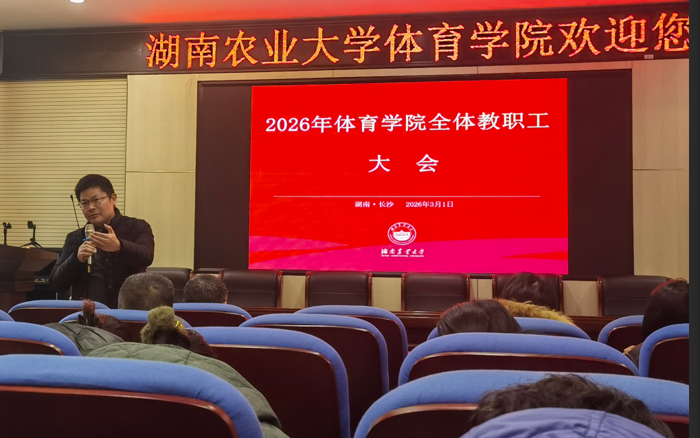 院长曹庆荣传达了学校《学习贯彻党的二十届四中全会精神专题培训暨2026年学校高质量发展务虚会》精神,全面总结了学院2026年开展的各项工作,并对新学期重点工作进行了安排和部署。他强调,学院在教育教学、科学研究、体育竞赛、社会服务等方面都取得了不错的成绩,离不开全院教职工的共同努力。新学期,学院要紧紧围绕“健体修业,以体育人”, 紧盯学院2026年发展考核目标任务,全力抓好学院内涵建设,助推学院高质量发展。