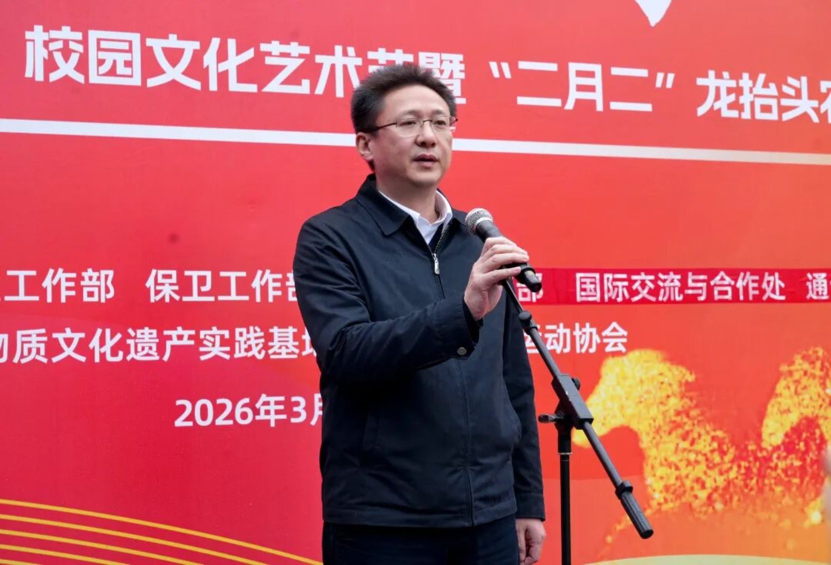 春雨微凉,初心滚烫;龙抬头日,恰逢春分。当“龙抬头”的民俗祈愿遇上春分的万物勃发,湖南农业大学“青春同梦 沃野同耕”校园文化艺术节开幕式暨“二月二”龙抬头农耕体育文化活动于文渊馆前坪顺利开展,校党委书记兰勇,校党委副书记、校长唐文帮出席,全体校领导,相关职能部门负责人、学院党委副书记、团委书记及师生代表共同参加。兰勇宣布活动开幕。