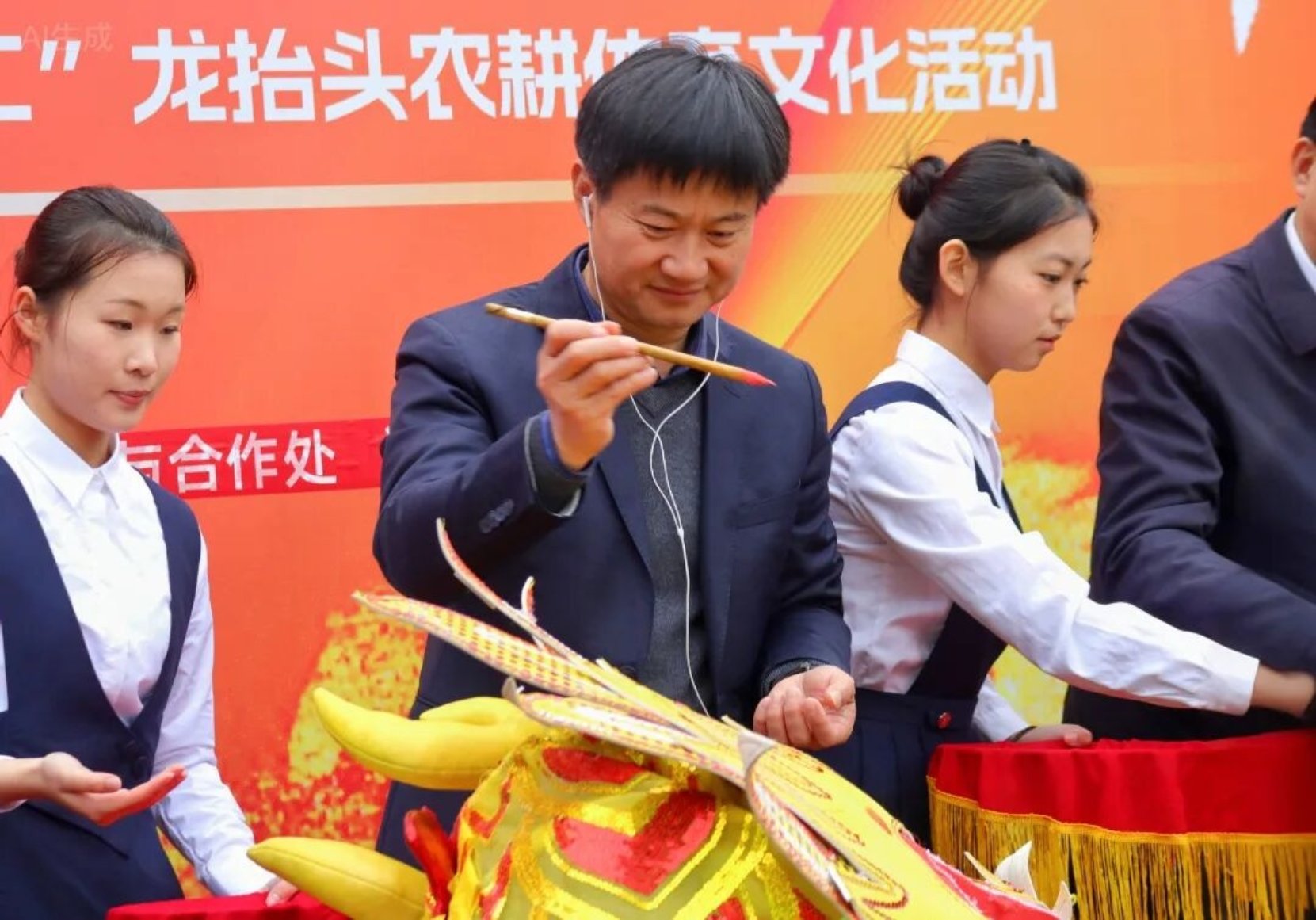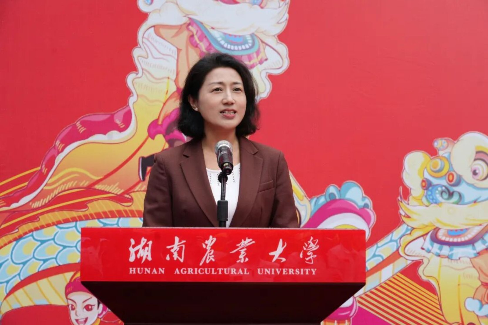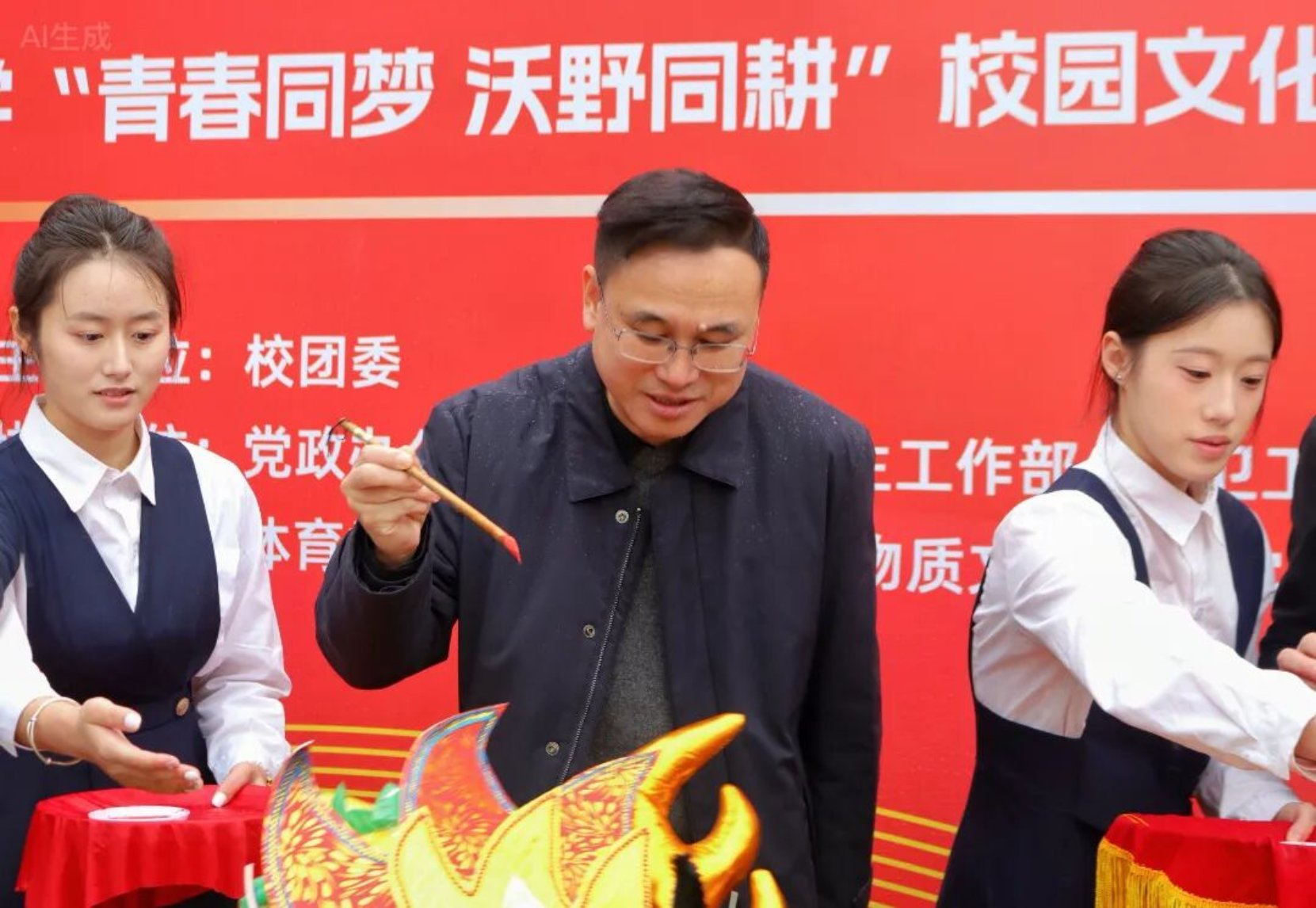 点睛仪式上,全体校领导手持朱砂笔,为祥龙点睛祈福,醒狮献瑞:“马跃新程奋勇问鼎一流,龙腾沃野 文启强农华章!”传递出全体湘农人奋进新征程、建功新时代的坚定信念。