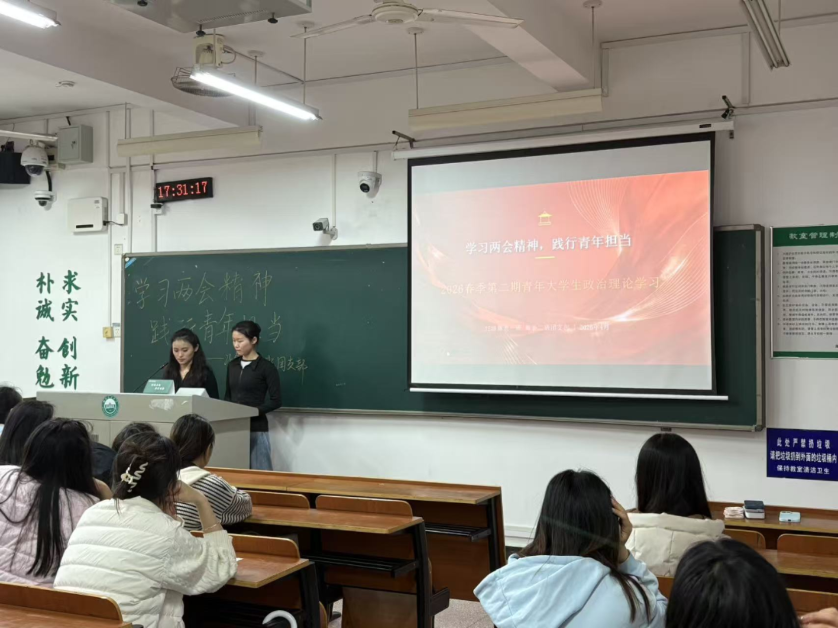 此次政治理论学习,不仅让同学们深刻领会了2026年全国两会的核心要义与时代价值,更激发了大家的家国情怀与责任担当。正如习近平总书记对青年的殷切嘱托:“青年强,则国家强。”当代中国青年生逢其时,施展才干的舞台无比广阔,实现梦想的前景无比光明。基层的广阔天地,正是青年施展抱负、成就事业的最佳战场。