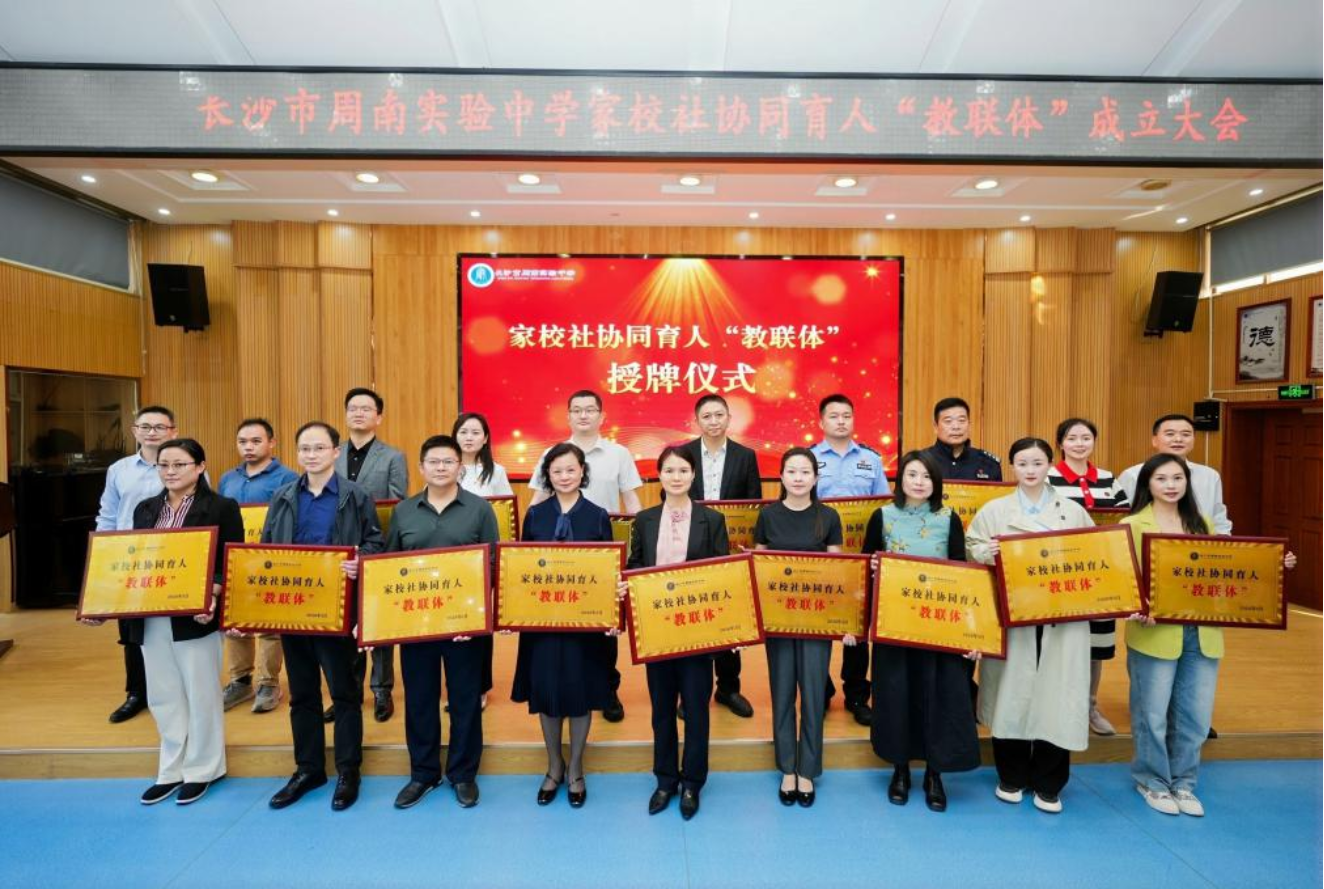 4月9日,长沙市周南实验中学教联体成立大会暨授牌仪式隆重举行。此次教联体成立,是长沙市落实基础教育优质均衡发展部署、深化新时代体教融合改革的重要实践。体育学院党委书记裴虎、体育教育系副主任何伟兴应邀出席,共同见证这一深化校际合作、推动教育协同发展的重要时刻。