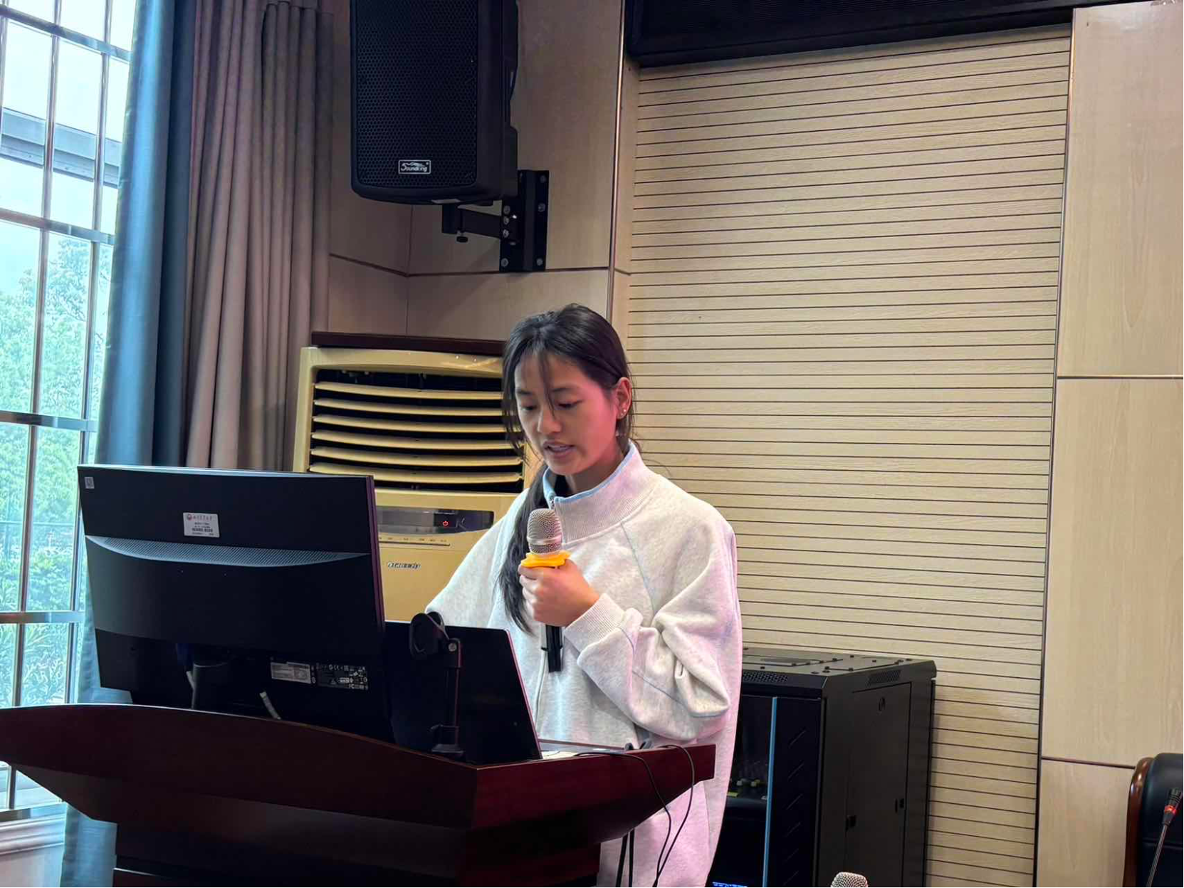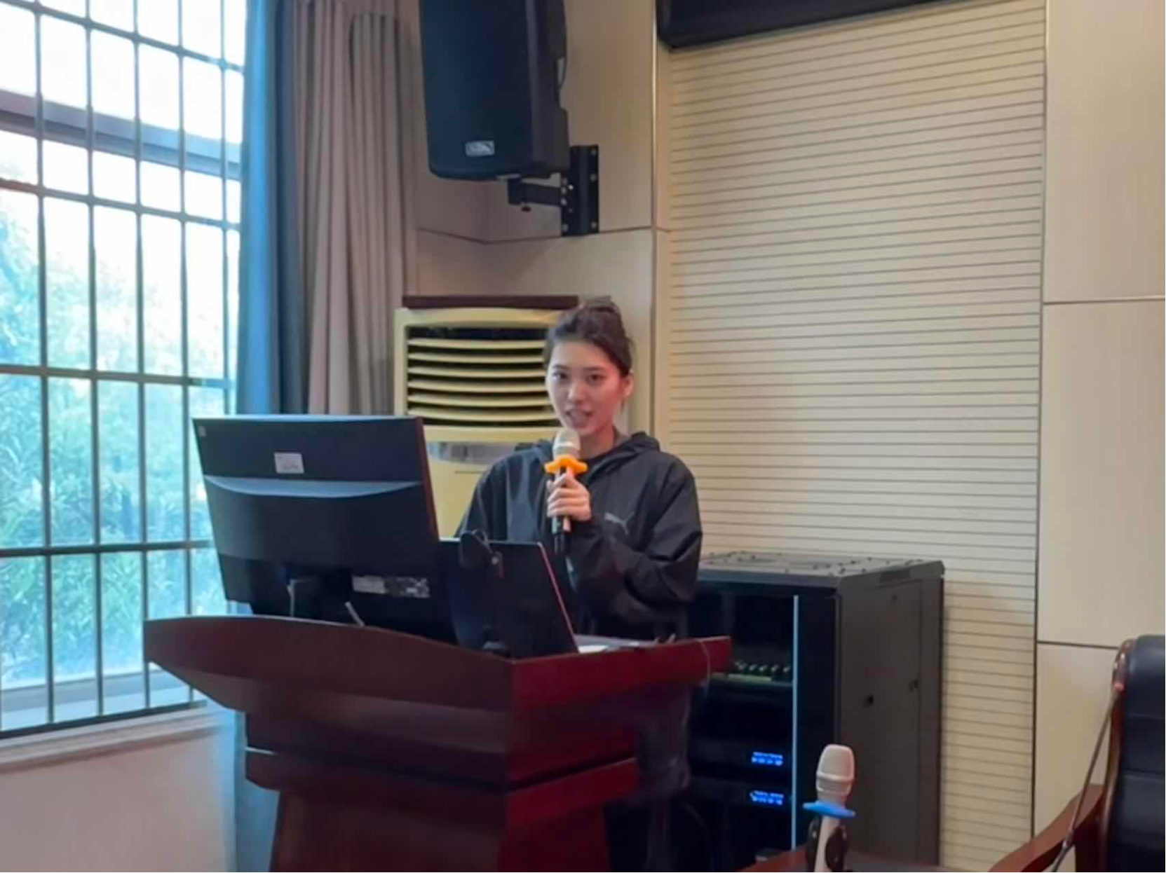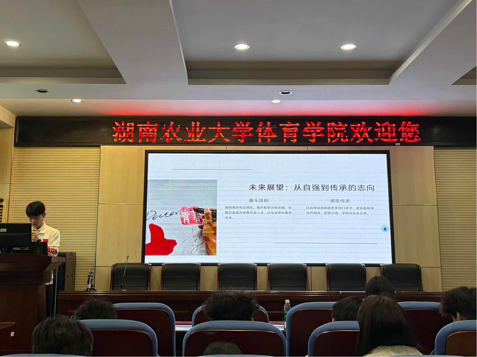 比赛现场,六组选手依次登台,以亲身成长经历为蓝本,以青春奋斗感悟为内核,分享在逆境中坚守初心、在拼搏中淬炼成长的励志故事,淋漓尽致地展现了体育学子坚韧不拔、向阳而生的精神风貌。值得一提的是,体育23-3的王历菊的演讲直击人心、令人动容,她以纤弱之躯直面体育竞技的严苛磨砺,以日复一日的刻苦训练与勤勉求学,完成了从追光者到发光者的蜕变,在困境中自强不息、刻苦奋进,成长为品学兼优、全面发展的优秀青年,用实际行动诠释了“自强”的深刻内涵,让在场师生潸然泪下。