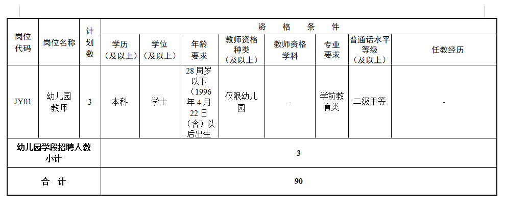 (3)具备报考岗位所在学段及以上层次的教师资格证书,所持教师资格证书的任教学科与报考学科一致。地理、物理、生物、化学、科学学科教师资格证书可以报考小学科学岗位;