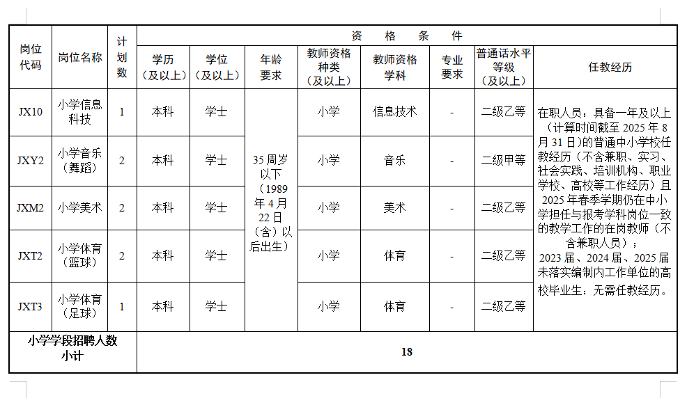 2.仅音乐、体育、美术、幼儿园学科岗位需参加技能测试。技能测试主要测试考生的专业水平和能力,测试项目为报考岗位相应项目。