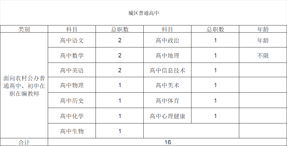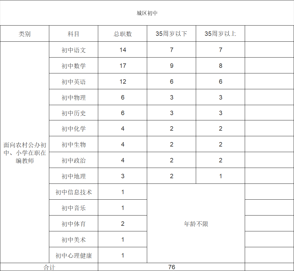 (2)城区初中岗位面向农村公办初中、小学在职在编教师选调;