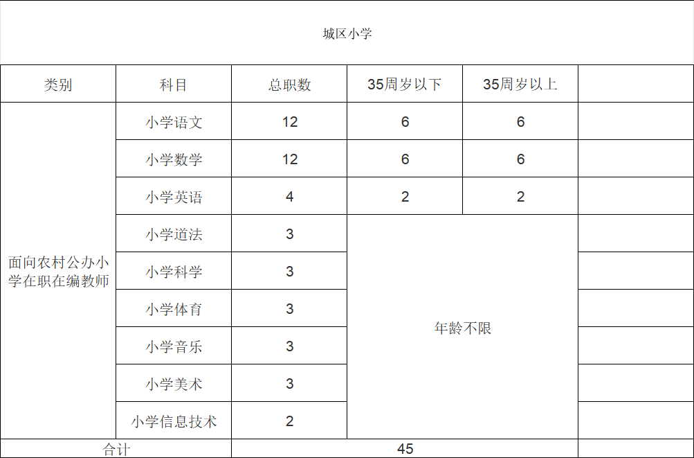 (3)城区小学岗位面向农村公办小学在职在编教师选调;