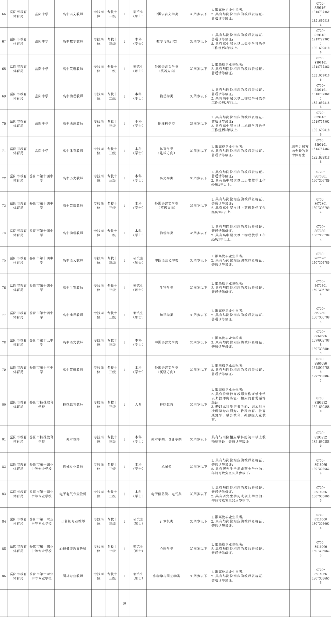 2.公开招聘工作期间,应聘人员务必保持手机畅通,密切关注“岳阳市人力资源和社会保障局官网”和招聘单位主管部门的公告、通知,因应聘人员原因导致错过招聘信息和时间节点影响应聘的,由应聘人员自行承担责任。