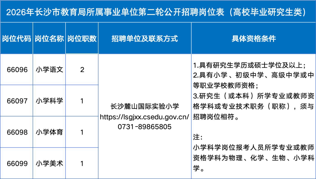 具体要求查看《2026年长沙市教育局所属事业单位第二轮公开招聘教职工公告》及相关附件