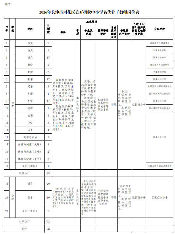 1.2026年长沙市雨花区公开招聘中小学名优骨干教师岗位表