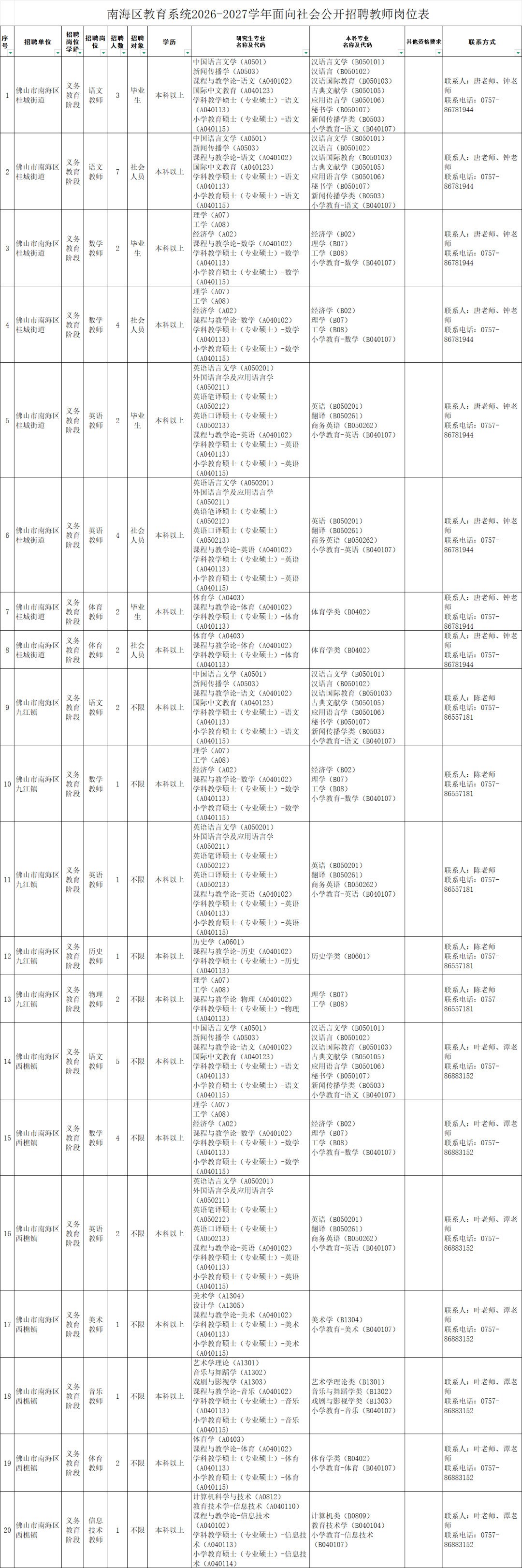 附件:1.广东省佛山市南海区教育系统2026-2027学年度面向社会公开招聘教师岗位表
