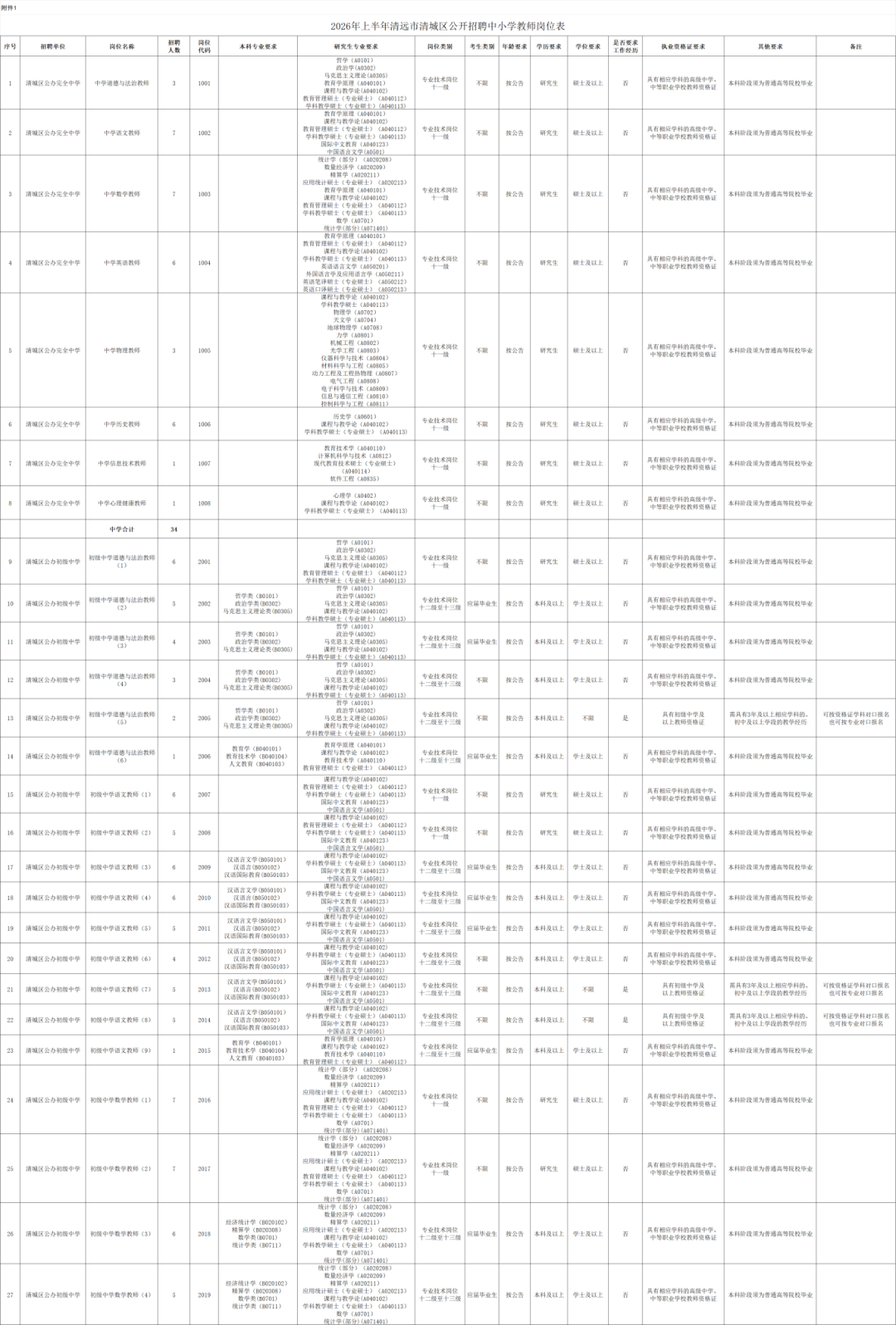 1.2026年上半年清远市清城区公开招聘中小学教师岗位表.xlsx